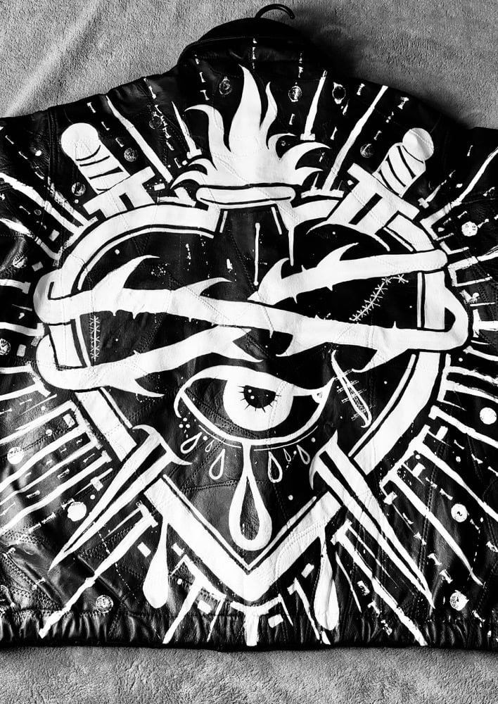 -Hand-painted with professional leather paint bold, permanent, and meant to be worn in the streets, on stage, or wherever you move.